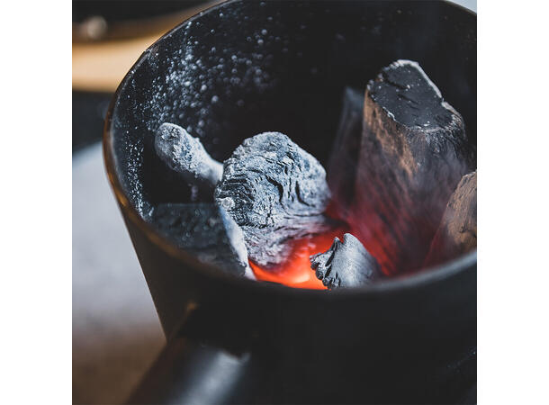 Den består av tre deler, et lokk, en hoveddel og bunnen. Du starter enkelt med å fylle hoveddelen. Plasser binchotan kullet først i hoveddelen oppreist. Så plasserer du bunnen med logoen vendt ned mot en ildfast flate. Plasser tennull eller en annen grillstarter på bunnen og tenn på. Hiv så på hoveddelen og la det stå i 15-30 minuter til binchotan kullet gløder og du da er klar til å grille. Dette bør gjøres med grillhansker eller en grilltang da det kan bli varmt.
